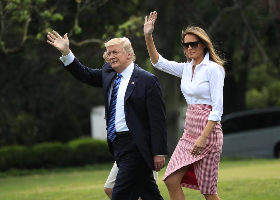 President Donald Trump, First Lady Melania Trump, walk on the South Lawn as they leave the White House in Washington, Friday, June 30, 2017. The President and First Lady are leading a leaner White House payroll with projected taxpayer savings of $22 million. (AP Photo/Manuel Balce Ceneta)